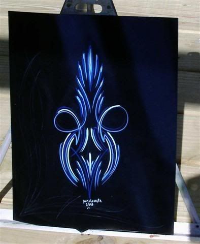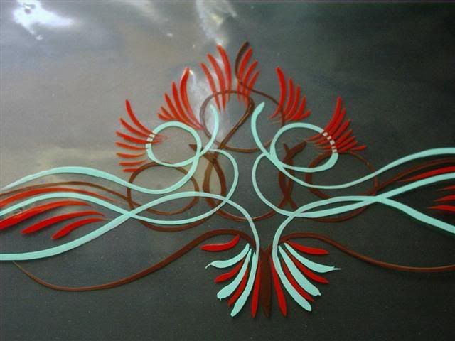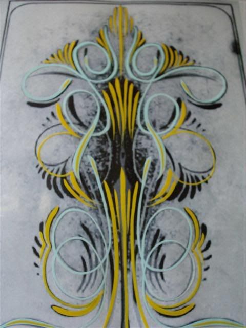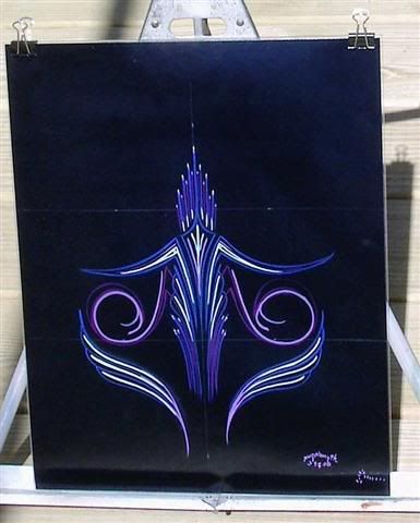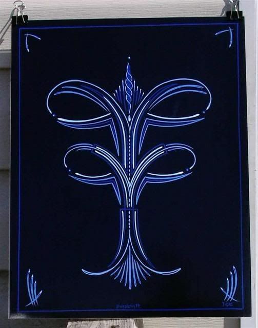 Saw an element the night before, and decided to make a design from it in different directions. I think the center looks like a rib cage, hubby thinks it has an oriental flair to it, like the designs on samuria clothing, I can see that too~