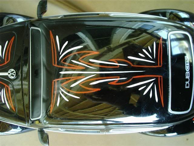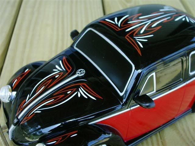 I got a lil buggy,,,, actually I have alot of these bugs! But I've been wanting to decorate our r/c cars. So I took this one to start , it's a 1/18th jada. Not sure how long it will last on there after it gets run under chair rungs, but it looks good for now.